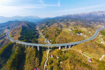 2022年2月20日,在安徽省安庆市岳西县温泉镇西营村,六(安)潜(山)高速从村中穿过,宽阔的水泥路通村入户,宛如一条条巨龙飞越秀丽的山川。 安徽省安庆市岳西县地处大别山腹地,近年来,该县不断加大对公路的建设和管护力度,方便群众出行,推进产业发展,改善人居环境,让村民们的致富路越走越宽。