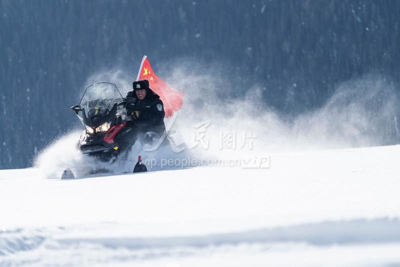 2022年2月26日,新疆出入境边防检查总站阿勒泰边境管理支队喀纳斯大队禾木边境派出所的雪地摩托车边境巡控队开展巡逻踏查工作。 当前正是滑雪旅游旺季,为了进一步加强边境前沿雪场的治安管控工作,禾木边境派出所第一时间将新成立的雪地摩托车边境巡控队投入到雪场巡逻任务中,充分发挥雪地摩托车在积雪环境中机动力强、行动快捷的优势,为驻地群众和抵边滑雪的各地游客提供及时高效的警务服务。
