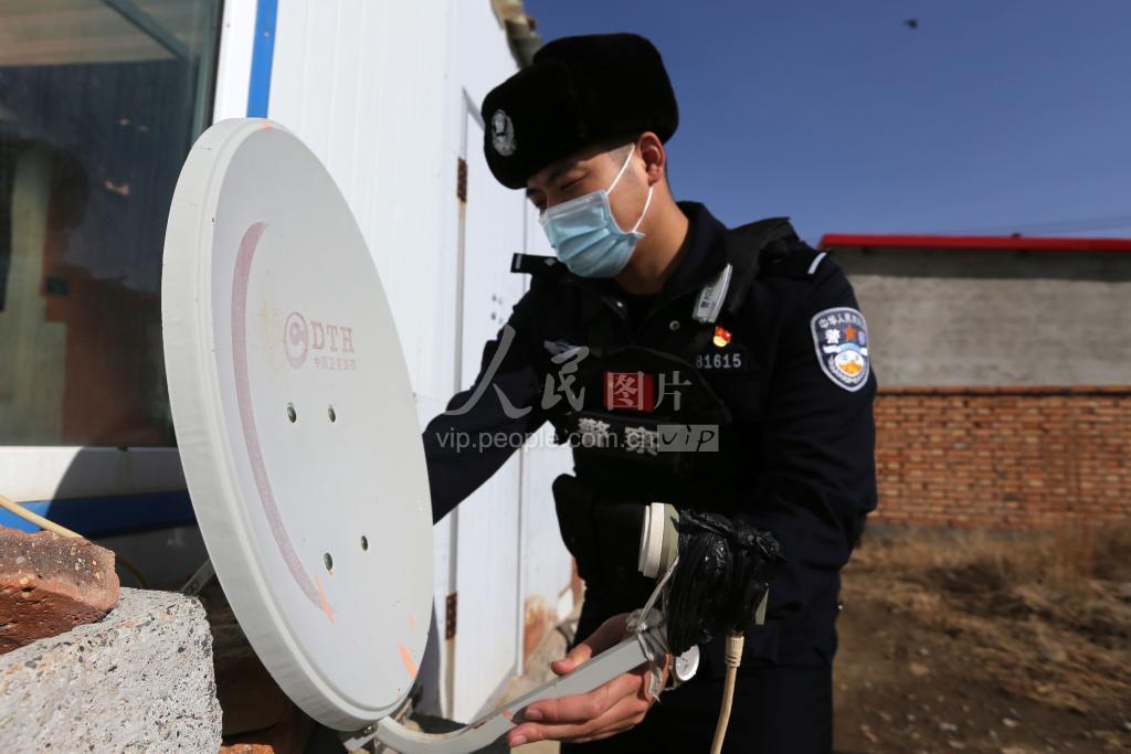 2022年3月9日,“马背服务队”的民警在伊吾县前山哈萨克民族乡金牧新村为牧民调试电视天线。