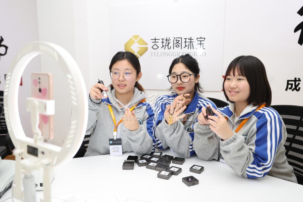 2022年3月17日,江苏省淮阴商业学校珠宝鉴定专业的师生在学校的创业孵化中心进行网络销售直播。
