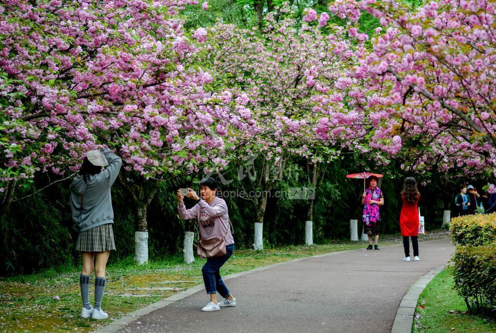 近日,四川省成都市青白江区凤凰湖湿地公园内,上万株樱花竞相绽放,吸引众多游客前来观赏。