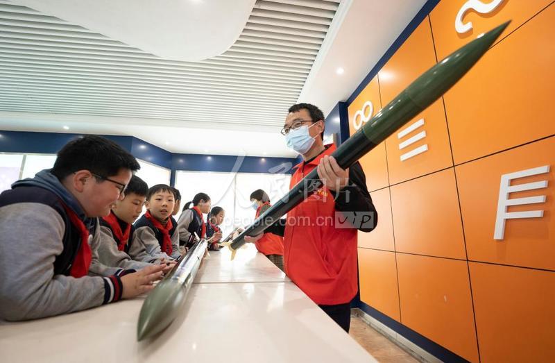 2022年3月22日,江西省新余市高新四小的小学生在老师带领下走进新余市气象站,这是小学生在了解人工增雨作业流程。