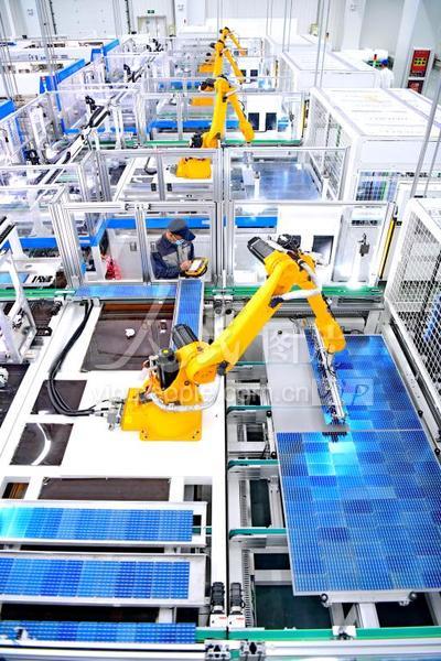 2022年3月22日,在位于江西省赣州市南康区镜坝镇的赣州爱康光电科技有限公司,工人在车间操作自动化设备加工出口的光伏电池板。 该公司是太阳能光伏组件制造商,立足江苏张家港、浙江长兴、江西赣州三大生产基地,其中江西赣州生产基地年产能1.2GW,全部采用先进的自动化、智能化、数字化设备,生产的高效太阳能电池片主要用于国内外的集中式与分布式光伏发电站,并为老区赣州市南康区提供就业岗位近800个,实现经济效益、生态效益和社会效益共赢,助力碳达峰碳中和目标实现。