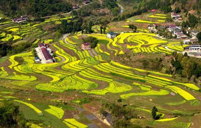 三月下旬,陕西省汉中市宁强县数万亩梯田油菜花进入盛花期,油菜花田依山傍水,香气四溢,与连绵的青山、清澈的溪水、蜿蜒的公路、漂亮的民居等交相辉映,构成一幅美不胜收的春日乡村画卷。 近年来,宁强县围绕旅游名县目标,以自然生态和历史文化为主线,以绿色循环发展理念为支撑,把丰富的旅游资源同田园景观、农业生产、农业经营、农耕文化、农家生活等资源有机融合,大力发展“乡村生态旅游”新业态,促进农户增收、乡村振兴。