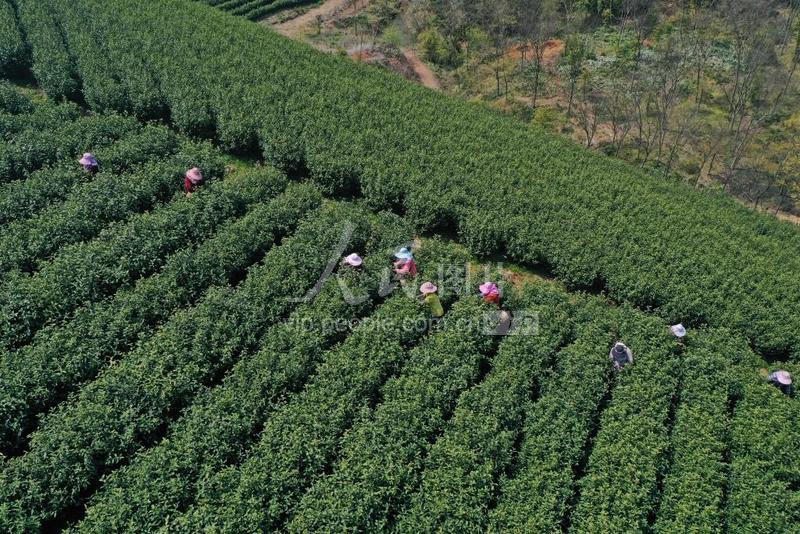 2022年3月29日,位于常州市金坛区薛埠镇的“江苏省绿色优质茶叶基地”,采茶工们正在开采春茶。