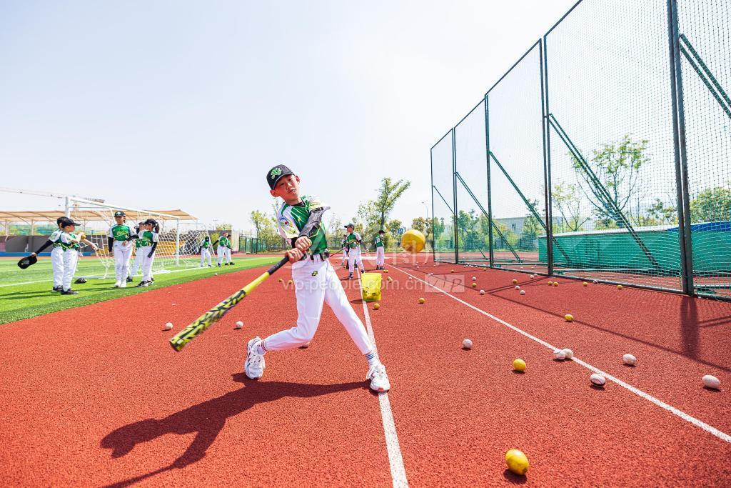2022年4月6日,在浙江省湖州市南太湖新区新风实验小学教育集团西南校区,棒球队队员正在校内训练。 近年来,浙江省湖州市新风实验小学教育集团实行“基础项目+特色拓展”课程模式,将棒球作为特色体育项目引入校园,成立棒球队参与赛事竞技并开设棒球拓展课程,以强健学生体魄,促进学生全面发展。