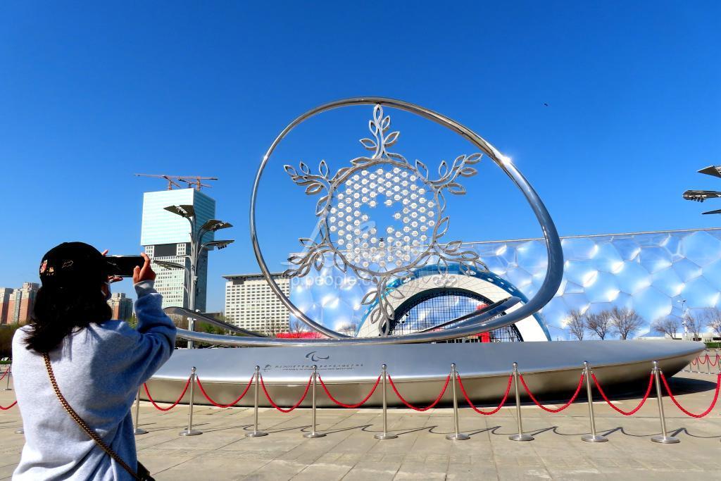 2022年4月6日,北京奥林匹克公园中心区恢复对外开放,吸引众多游客前来观光游览、拍照留念。