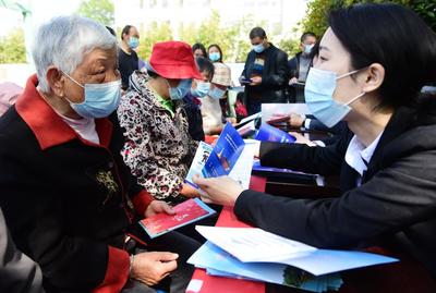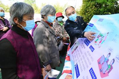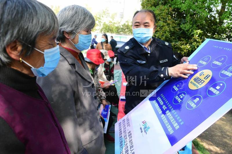 2022年4月8日,在江苏省镇江市四圩社区,七里甸司法所工作人员在为居民讲解法律援助方式及相关知识。