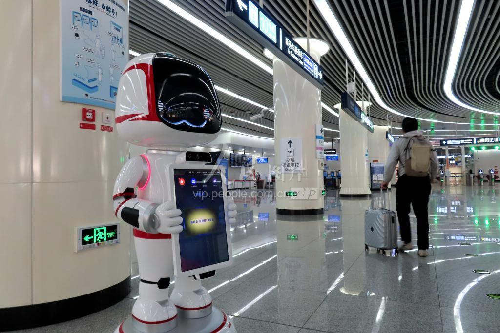 2022年4月10日,智能服务机器人在地铁大兴机场线草桥站“上岗”。