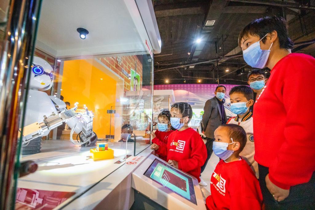 2022年4月10日,小朋友在家长的陪同下来到贵州省毕节市科技馆体验科普展项。