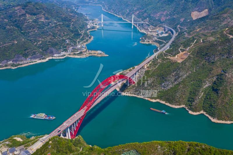 2022年4月9日,三峡库区湖北省宜昌市秭归县江段,几艘轮船正在穿过秭归长江大桥,峡中行船、峡上架桥,形成水陆立体交通格局。 地处三峡库区的湖北省宜昌市秭归县,一条长江将其分为两半,2015年8月28日在长江西陵峡口动工兴建世界最大跨度钢箱桁架推力式拱桥——秭归长江大桥,2019年9月27日建成通车,天堑变通途,结束了秭归江南江北两岸隔江相望、舟楫以渡的历史,同时也把武当山、神农架、恩施大峡谷、清江画廊、三峡大坝、屈原故里、昭君故里等文化旅游区串联起来,形成风光迥异、文化多元、资源富集的鄂西旅游圈。