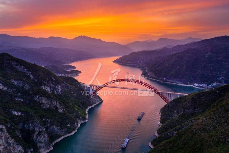 2022年4月9日,三峡库区湖北省宜昌市秭归县江段,几艘轮船正在穿过秭归长江大桥,峡中行船、峡上架桥,形成水陆立体交通格局。 地处三峡库区的湖北省宜昌市秭归县,一条长江将其分为两半,2015年8月28日在长江西陵峡口动工兴建世界最大跨度钢箱桁架推力式拱桥——秭归长江大桥,2019年9月27日建成通车,天堑变通途,结束了秭归江南江北两岸隔江相望、舟楫以渡的历史,同时也把武当山、神农架、恩施大峡谷、清江画廊、三峡大坝、屈原故里、昭君故里等文化旅游区串联起来,形成风光迥异、文化多元、资源富集的鄂西旅游圈。