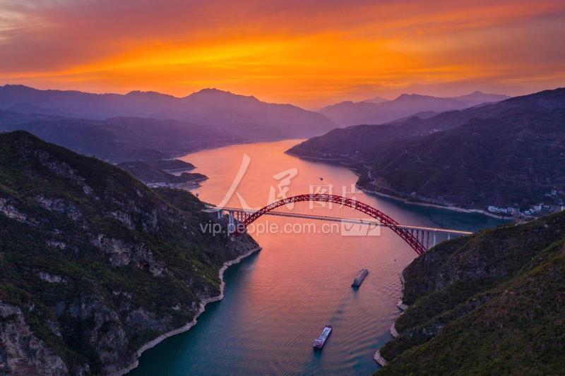 2022年4月9日,三峡库区湖北省宜昌市秭归县江段,几艘轮船正在穿过秭归长江大桥,峡中行船、峡上架桥,形成水陆立体交通格局。 地处三峡库区的湖北省宜昌市秭归县,一条长江将其分为两半,2015年8月28日在长江西陵峡口动工兴建世界最大跨度钢箱桁架推力式拱桥——秭归长江大桥,2019年9月27日建成通车,天堑变通途,结束了秭归江南江北两岸隔江相望、舟楫以渡的历史,同时也把武当山、神农架、恩施大峡谷、清江画廊、三峡大坝、屈原故里、昭君故里等文化旅游区串联起来,形成风光迥异、文化多元、资源富集的鄂西旅游圈。