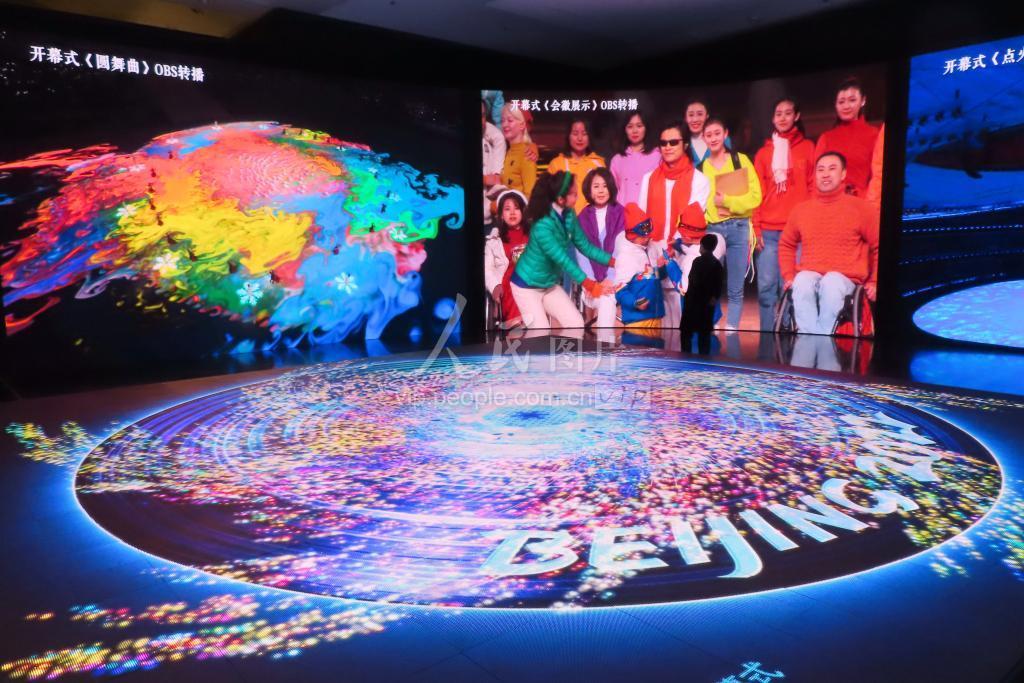 2022年4月17日,北京海淀区,观众在“共育未来——奥林匹克科技艺术展”现场参观。