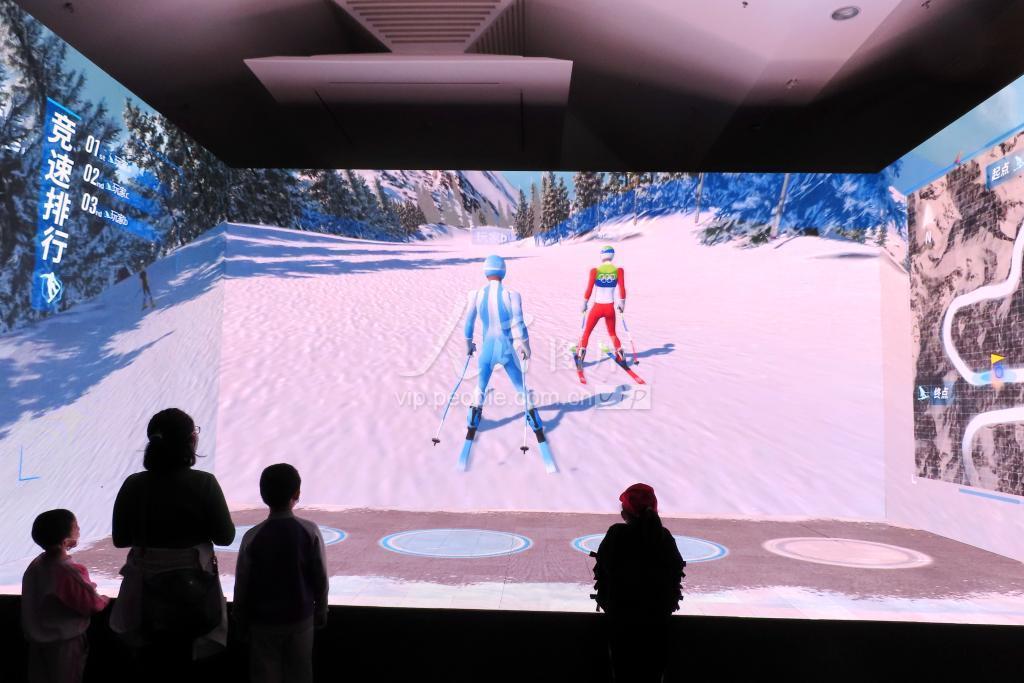 2022年4月17日,北京海淀区,观众在“共育未来——奥林匹克科技艺术展”现场参观。