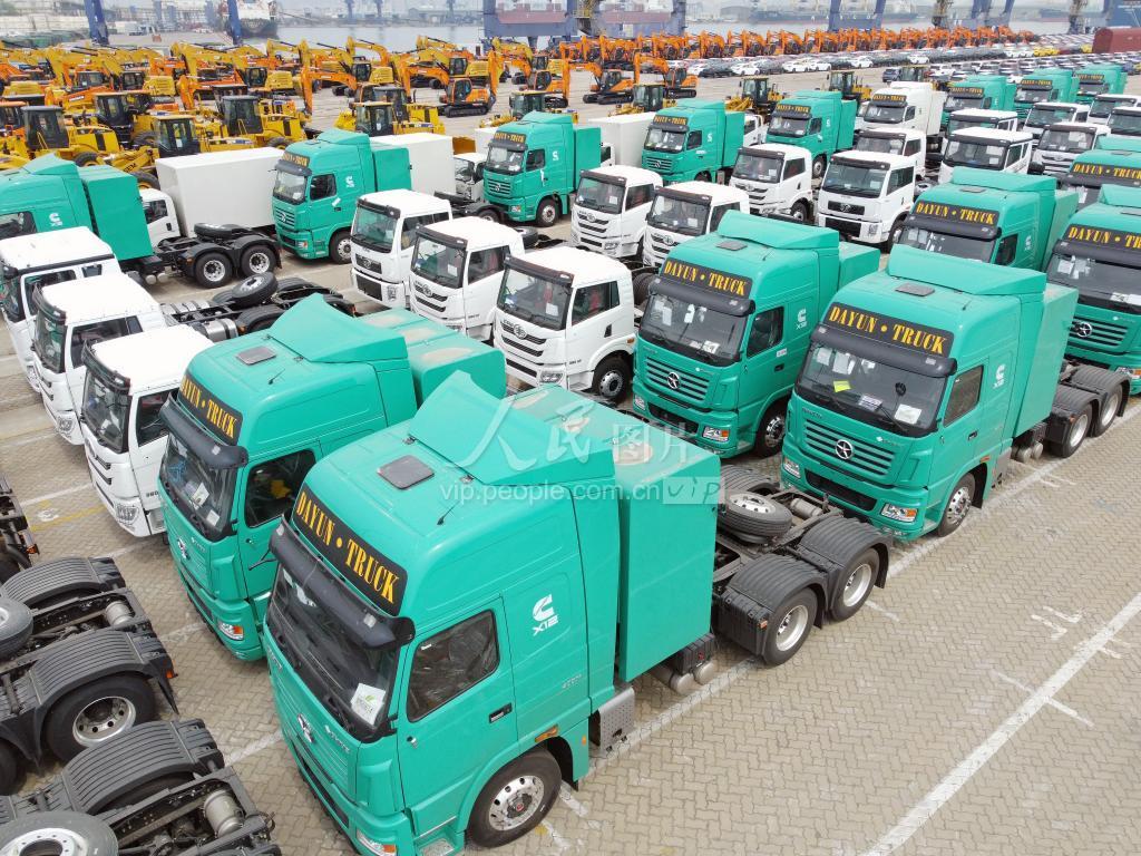2022年4月18日,大批出口商品车在山东港口烟台港集结等待装船。