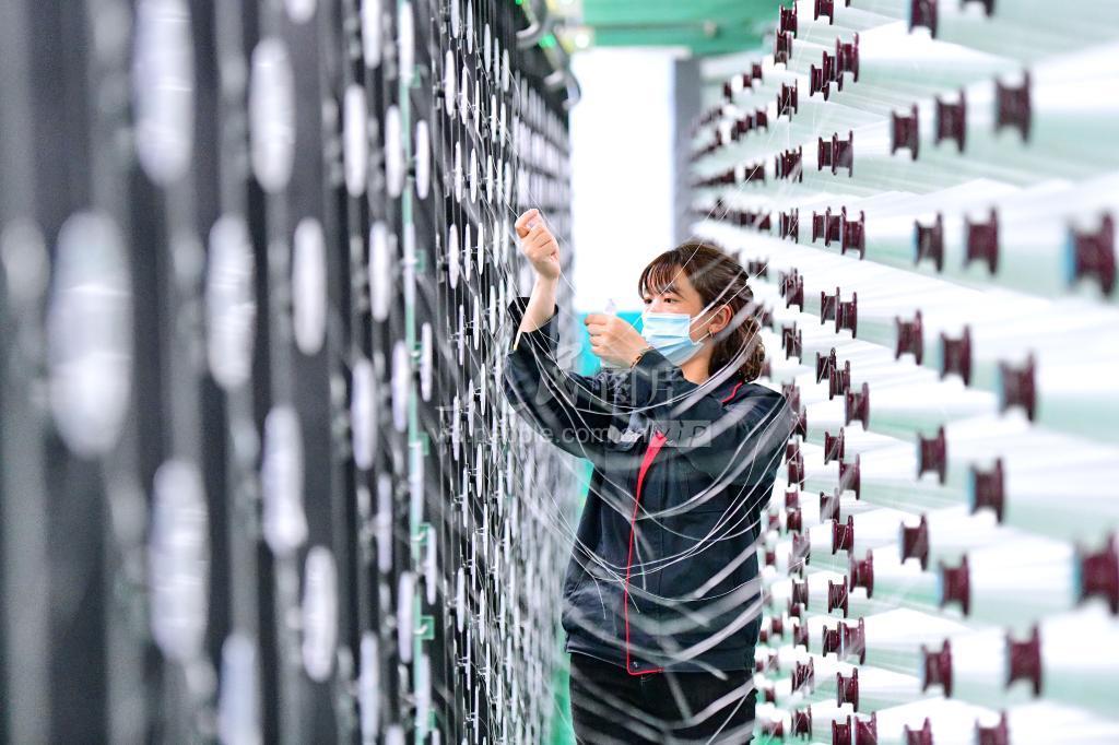 2022年4月19日,位于江西省赣州市上犹县新材料科创产业园的江西星科电子基材有限公司,工人操作着机械设备在加工生产电子级玻纤复合材料。该公司年产电子玻纤布3亿平方米,广泛运用在汽车、通信、风力等领域。 江西省赣州市上犹县坚持创新驱动战略,做大做强玻纤复材产业链、供应链,打造产业链“链长制”和安商营商机制,培育“专精特新”企业达160家,并引导扶持有条件的企业发行债券或上市融资, 从而破解阻碍民营企业、中小微企业发展的“融资难”“融资贵”瓶颈和难题,让企业有更多资金用于“数智”技改、产品研发和工业设计,推动数字经济和实体经济融合发展。