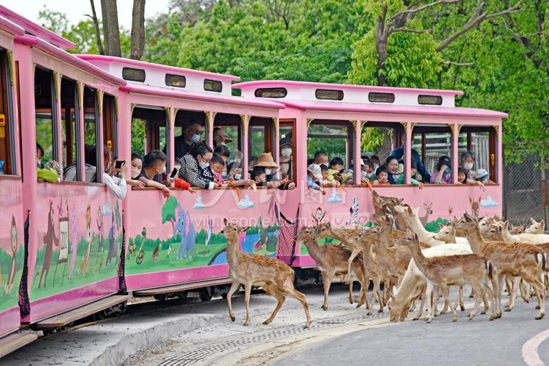 图片说明: 2022年4月28日,常州淹城野生动物世界园观光小火车项目正式开放,吸引游客前来乘坐体验。