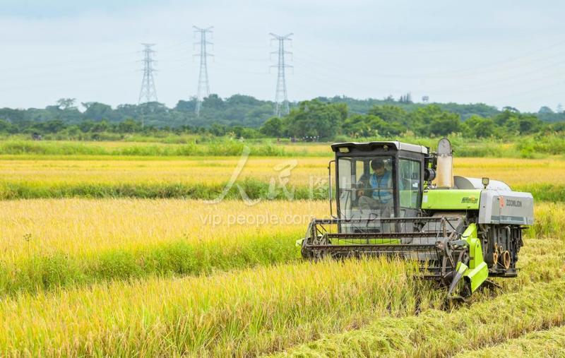 2022年5月6日,位于海南省海口市琼山区云龙镇的三十六曲溪,农户抢抓晴好天气驾驶收割机抢收水稻。