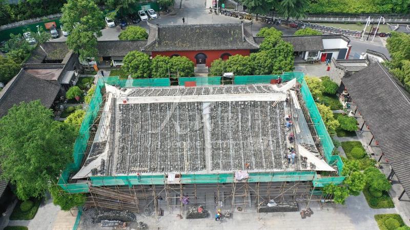 2022年5月14日,江苏省扬州市,天宁寺修缮施工现场。