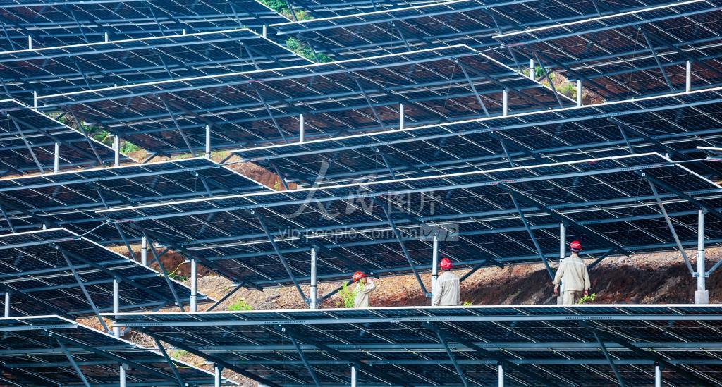 2022年5月13日,大唐新余高新新能源有限公司马洪光伏项目部的工作人员正在检查项目建设进展情况。