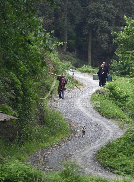 2022年5月14日,在三江侗族自治县良口乡晒江村梅寨屯,吴老财扛着刚砍的竹子回家。