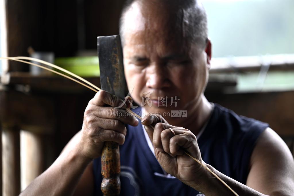 今年60岁的吴老财,家住广西柳州市三江侗族自治县良口乡晒江村梅寨屯,是当地远近闻名的盲人篾匠。他两岁时因病双目失明,18岁时在家人鼓励下,跟着村里老人学习竹编技艺。颇有天赋的他经过一段时间刻苦摸索,技艺日渐娴熟,从上山砍竹子到回家编织竹器,他都能独自完成。 勤奋好学的吴老财不仅编织技术过硬,还学会了弹琵琶、吹笛子、唱侗歌,性格开朗的他与村民关系融洽。许多人慕名而来,购买他编织的竹器,甚至邀请他到家里帮忙编织。40多年来,他以手为“眼”,依靠精妙的技艺成了十里八乡抢手的篾匠师傅,“编织”出别样人生。