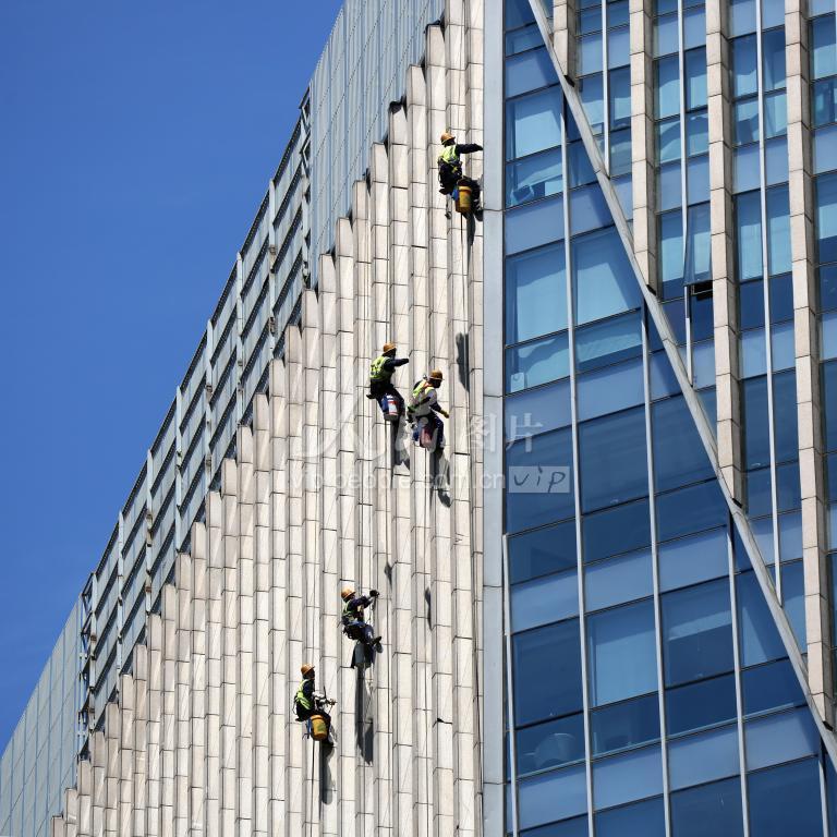 上传时间: 2022-05-14 16:26:39 图片说明: 2022年5月14日,北京市海淀区,工作人员在清洁大厦外墙。