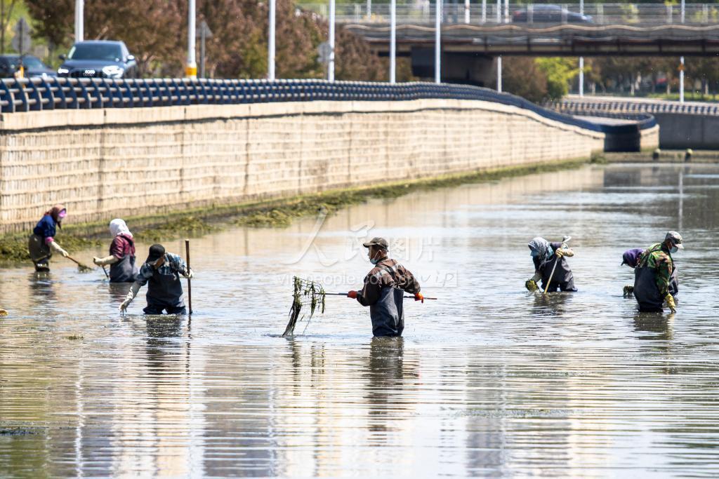 2022年5月15日,在辽宁省沈阳市浑南区白塔堡河世纪大厦段,由于河道狭窄河水较浅,浑南区水利局所属单位的工作人员只能深入河道内徒手做清淤除草工作,为了确保雨季河道畅通,还河道清澈的水质,保证了生态平衡。