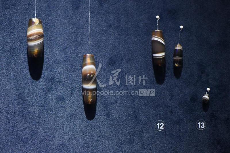 5月26日,“只此绚丽——广州出土汉代珠饰展”展出的西汉玛瑙珠。