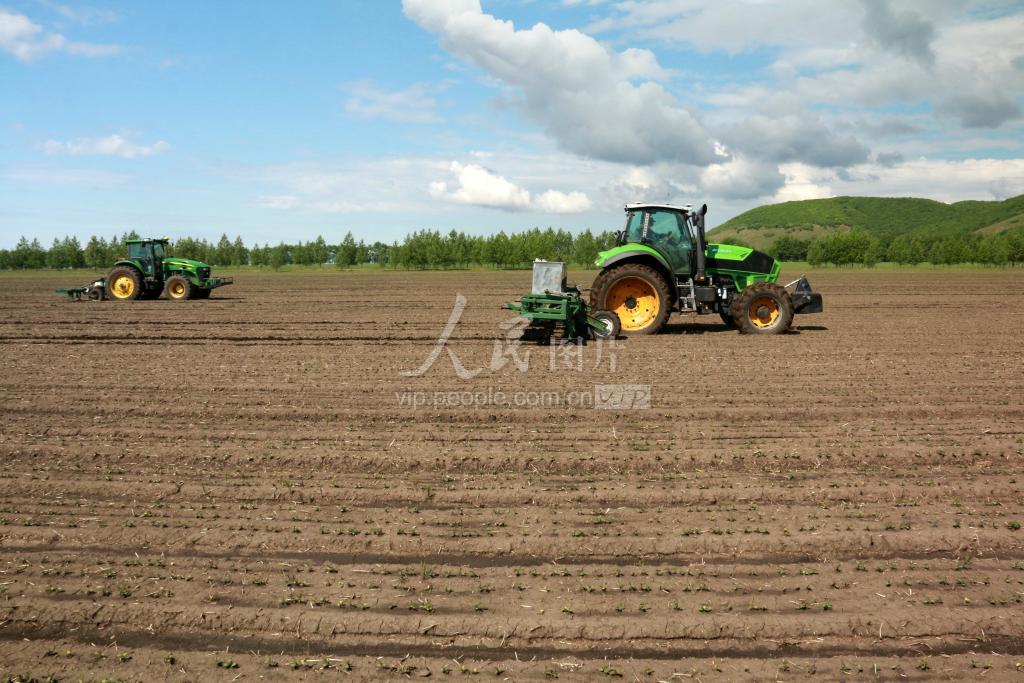 2022年6月1日,黑龙江黑河五大连池农场集中机械力量对大豆作物进行中耕作业。 进入6月,黑龙江广袤的黑土地上大豆、玉米等大田作物苗齐苗壮,长势喜人,广大农户抢抓晴好天气,抓紧对作物进行管理。