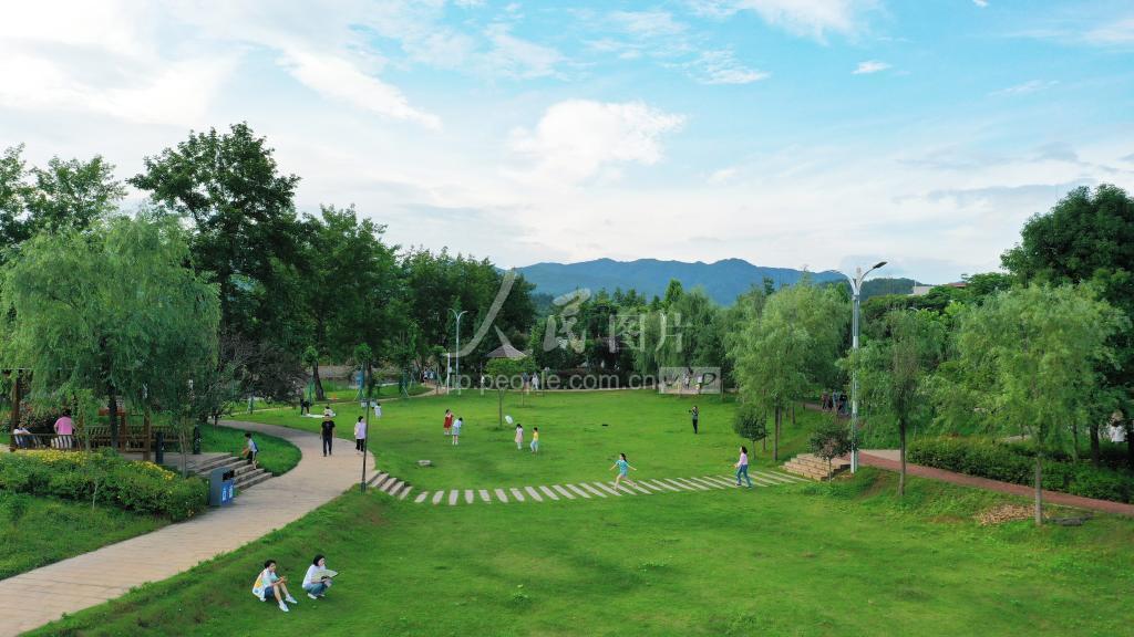 2022年6月3日,市民带着孩子在湖南省永州市新田县北湖湿地公园内悠闲游玩。端午假期第一天,人们纷纷走出家门,亲近自然,放松身心,享受假期休闲时光。近年,湖南省新田县将城市游园建设列入重点民生实事,因地制宜建设生态公园绿地,打造15分钟生态休闲圈,满足市民随时就近休闲、健身锻炼需求。城市品质持续提升,生态环境全面改善,让更多居民享受到了出门见绿、游园健身的公共绿色“生态红利”。