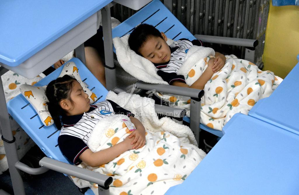 近日,河北省邯郸市丛台区东门外小学引进的一批“午休课桌椅”投入使用。午休时,学生把桌面一升,扶手一抽,课桌椅变身“折叠躺椅”,可以从“趴睡”变“躺睡”。