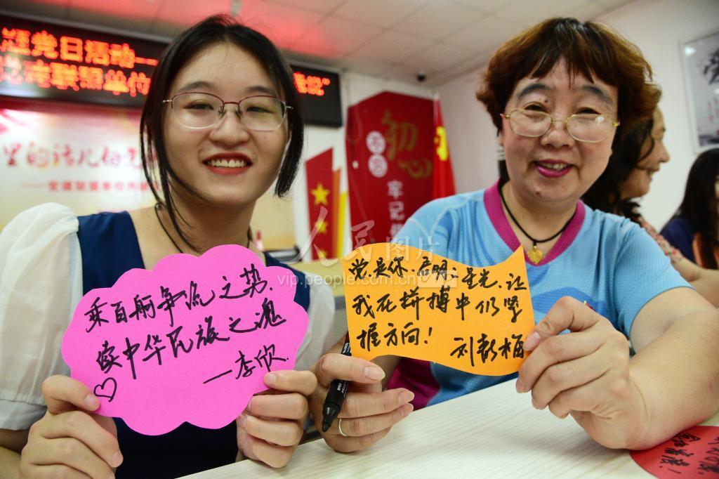2022年6月22日,江苏省镇江市金山街道红光太古山社区联合江苏科技大学党员志愿者开展“心里话儿向党说 喜迎二十大”主题党日活动,新老党员一起学习党史知识,在“心愿卡”上书写对党说的心里话,传承红色基因。
