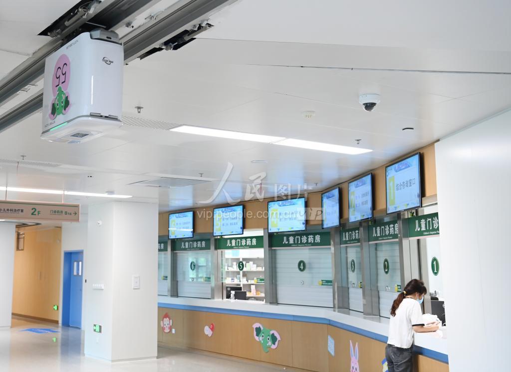 2022年6月23日,湖北武汉光谷同济儿童医院内,头顶不时穿梭的轨道物流小车吸引着孩子们好奇地目光。医院大楼内首次引入了轨道物流系统,能够让药品配送和标本传输实现“飞檐走壁”,医生、护士之间“不见面”就可以完成配药和检测。