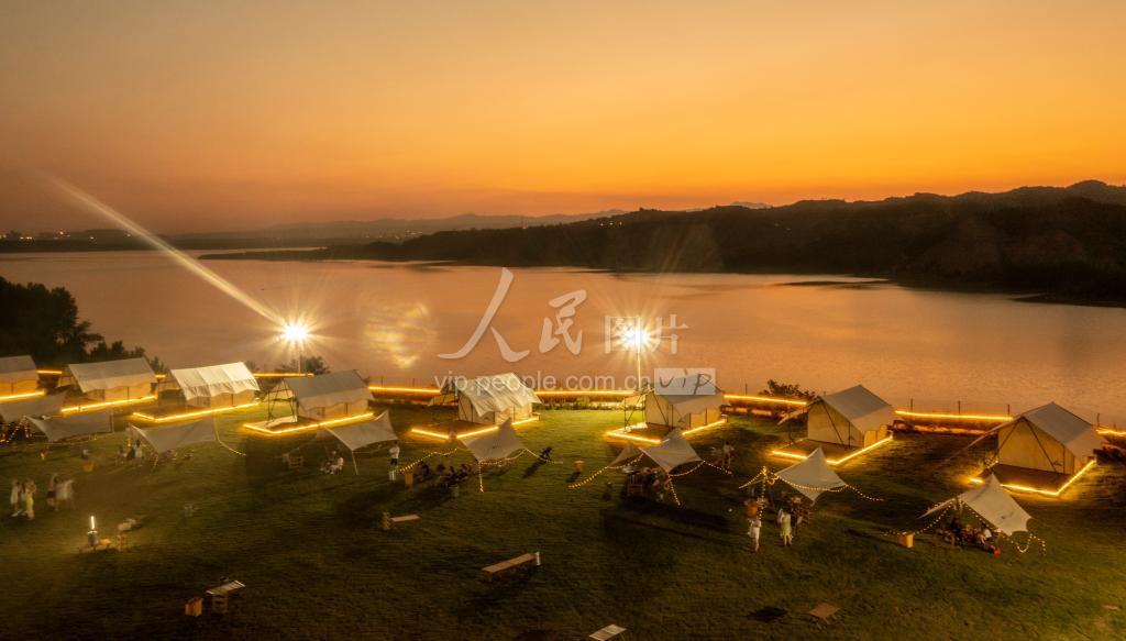 2022年6月23日,位于河南省三门峡市湖滨区高庙乡黄河岸边的慕野星空营地,一线黄河盛景尽收眼底,吸引着市民前来这里打卡露营消夏避暑,尽享夏日清凉的美好时光。