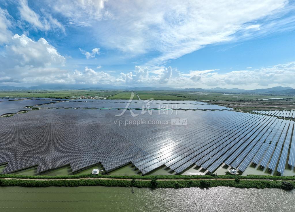 2022年6月22日,广东省台山市海宴镇南部临海的广东台山海宴镇500MWp渔业光伏发电项目俯瞰图。