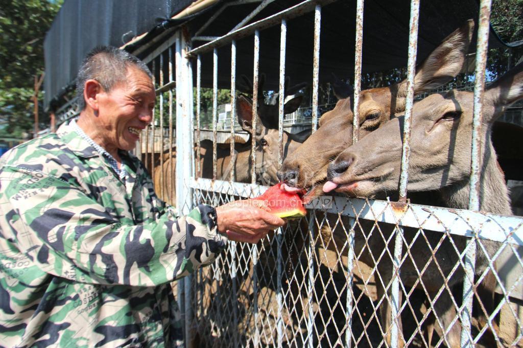 上传时间: 2022-06-24 15:51:53 图片说明: 6月24日,河南省南阳市人民公园动物园内,马鹿在吃西瓜。
