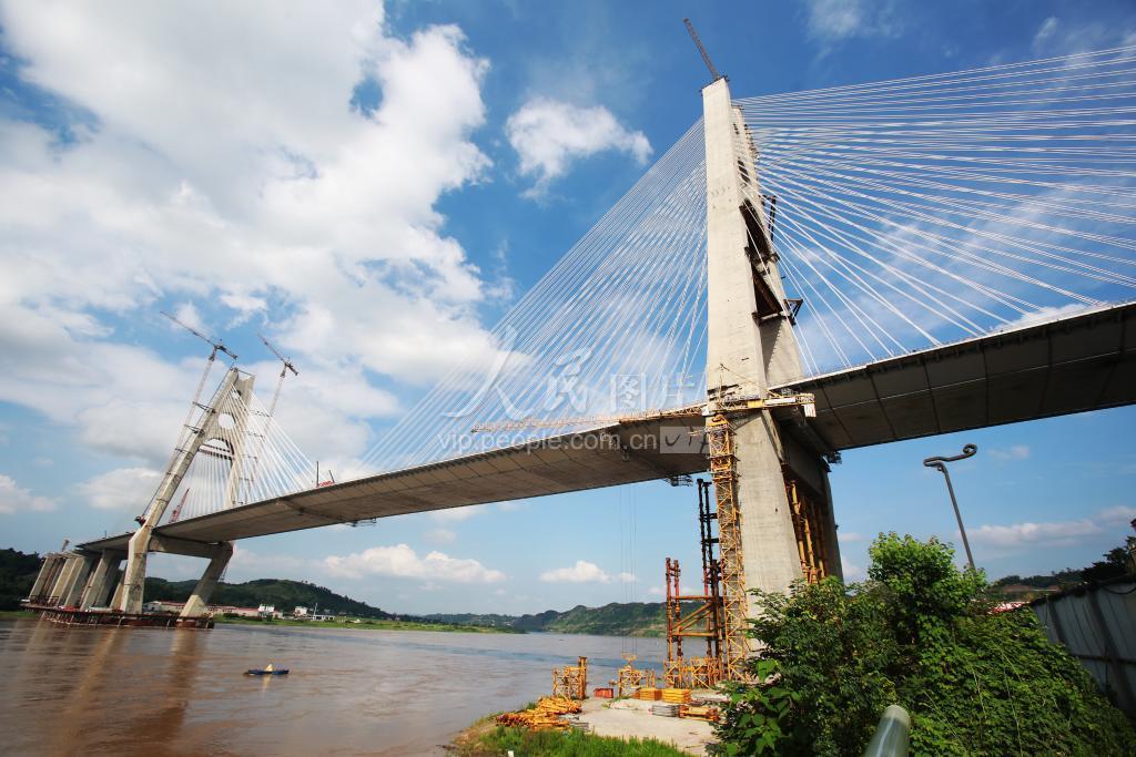 宜宾宜宾临港公铁两用长江大桥位于四川省宜宾市东部,连接三江新区与叙州区,全长1742.1米,桥面宽63.9米,主跨522米,在同类型桥梁中,其宽度和跨度均排名世界第一。大桥设计为中间4线300公里/小时的高速铁路,两侧为双向6车道城市快速路,最外侧铺设人行道、非机动车道。建成后,它将创造一个“世界之首”、两个“世界之最”:即世界首座采用公路和高速铁路平层布置的桥梁、世界最宽和跨径最大的公铁两用钢箱梁斜拉桥。