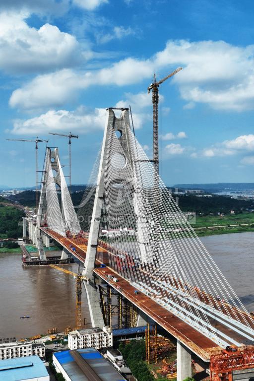 宜宾宜宾临港公铁两用长江大桥位于四川省宜宾市东部,连接三江新区与叙州区,全长1742.1米,桥面宽63.9米,主跨522米,在同类型桥梁中,其宽度和跨度均排名世界第一。大桥设计为中间4线300公里/小时的高速铁路,两侧为双向6车道城市快速路,最外侧铺设人行道、非机动车道。建成后,它将创造一个“世界之首”、两个“世界之最”:即世界首座采用公路和高速铁路平层布置的桥梁、世界最宽和跨径最大的公铁两用钢箱梁斜拉桥。