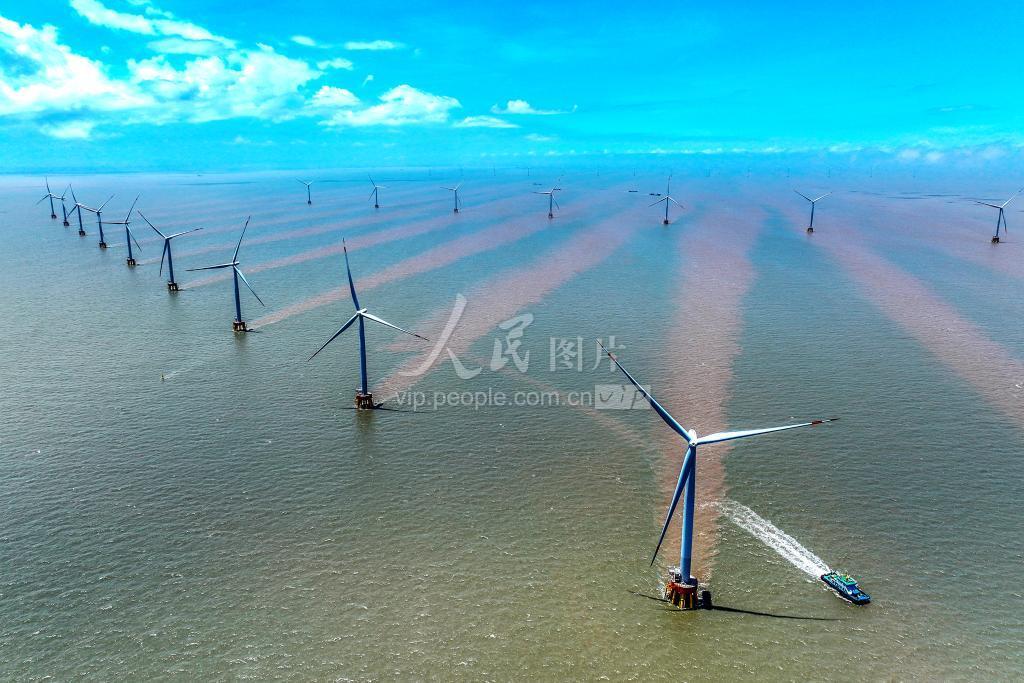 2022年7月2日,位于浙江省舟山市北部海域的岱山4号海上风电场,54台风电机组把海风转换成绿色电能。