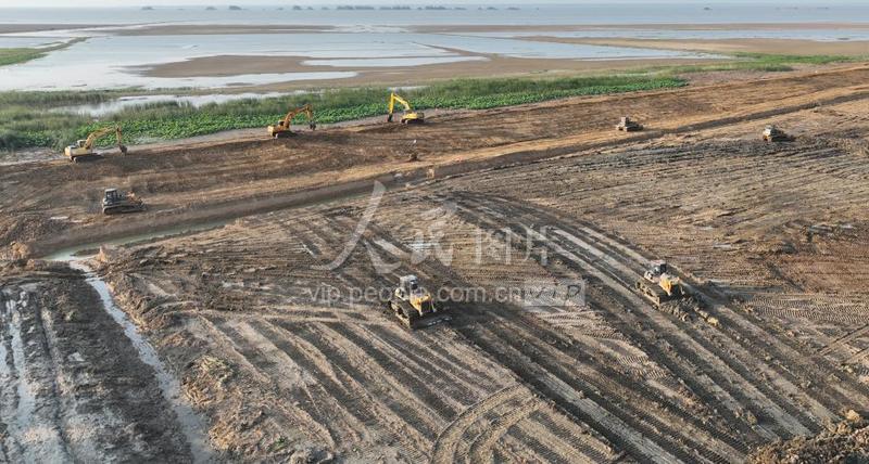 2022年7月1日下午,江苏省宿迁市泗洪县洪泽湖周边滞洪区近期建设工程施工现场,几十台挖掘机、推土机在清除堤防沿线淤泥,开挖土方,修筑围堰,整理取土区,一派施工繁忙景象。