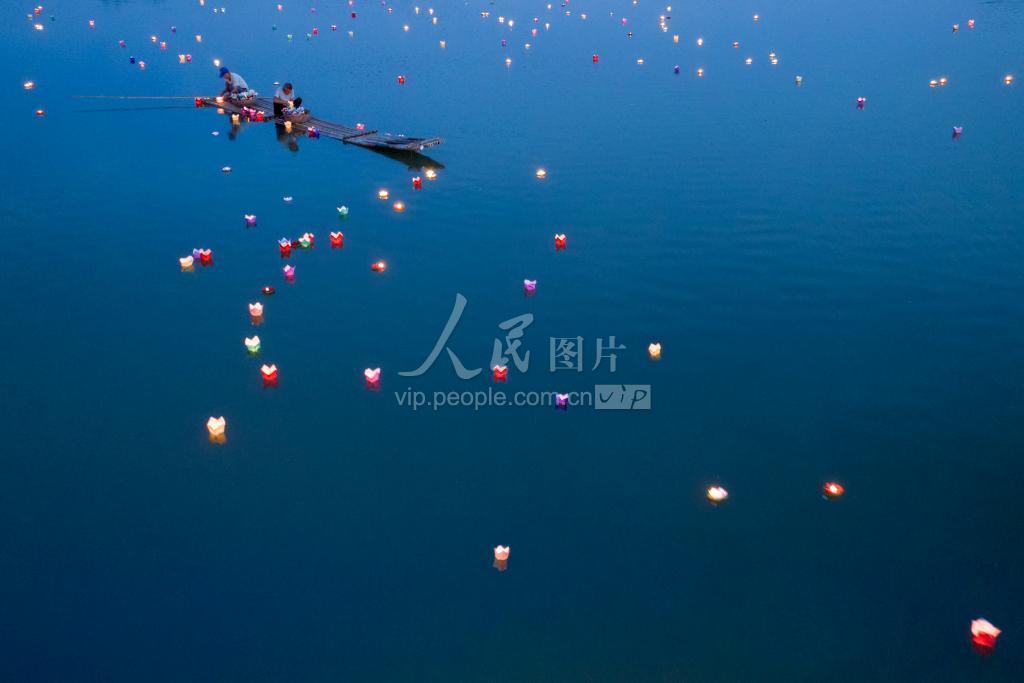 2022年7月2日,在安徽宣州区水东古镇水阳江畔,人们延续着传统,点亮荷灯。