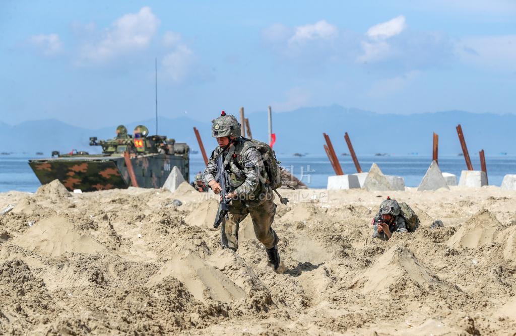 2022年7月1日至3日,陆军某旅联合海军某舰队、某陆航旅开展跨昼夜、全要素实兵实弹红蓝对抗演练,锤炼各兵种之间联合作战能力。