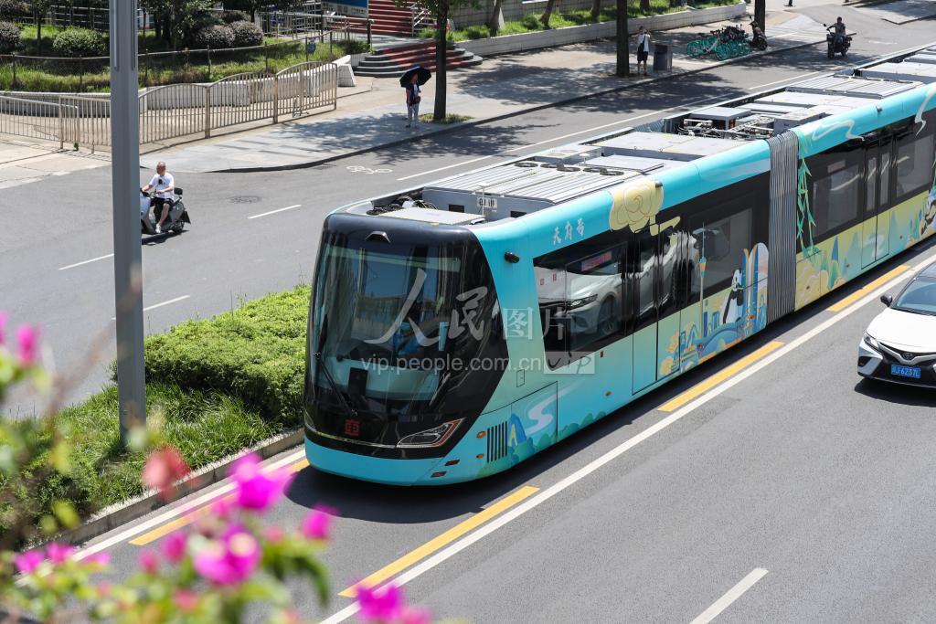 2022年7月6日,四川省宜宾市制造的智轨电车“蜀都号”和“天府号”在成都市载客试跑,不少市民前来体验感受新的出行方式。 7月4日以来,两辆由四川中车铁投轨道交通产业基地生产的智轨电车试跑在成都公交K6线区间运行,全长12公里,自五桂桥站至东安湖站,停站7座,全程运行时间约25分钟,运行速度约每小时29公里,试跑将持续至7月12日结束。智能轨道快运系统(简称“智轨电车”)是全电驱动轨道交通制式产品,也是我国自主首创的新型城市轨道交通制式,是一种“零污染”“零排放”的新型绿色交通工具。据了解,智轨电车具有良好的城市适应性,可与城市交通信号实时联动,能有效解决普通公交车载客量小的缺陷,提高城市公共交通的运力。