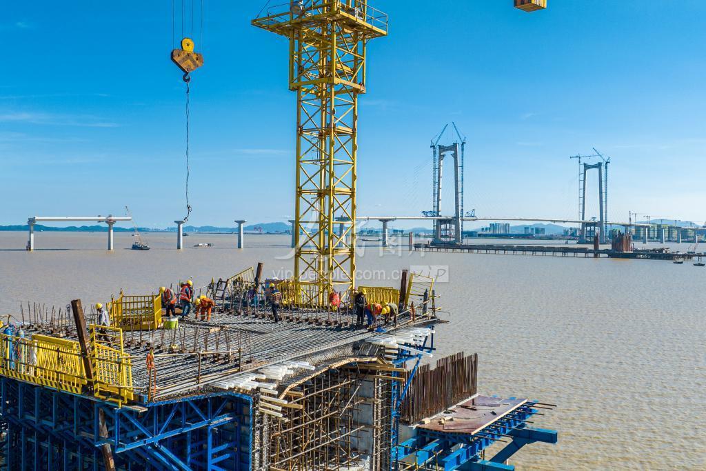 2022年7月10日,广州市南沙区万顷沙南侧的粤港澳大湾区超级工程深中通道,建设者们顶着高温,赶进度。 深中通道是集“桥、岛、隧、水下互通”于一体的跨海集群工程,全长约24公里,其中桥梁工程长约17公里,包括主跨1666米的超大跨径悬索桥伶仃洋大桥、主跨580米的斜拉索桥中山大桥、海上非通航孔引桥及陆域引桥等。作为连接珠三角两大功能组团 " 深莞惠 " 与 " 珠中江 " 之间唯一的公路直连通道,也是连接中国广东自由贸易试验区(广州南沙、深圳前海和珠海横琴)之间的交通纽带,深中通道具有重大的经济意义和社会意义。