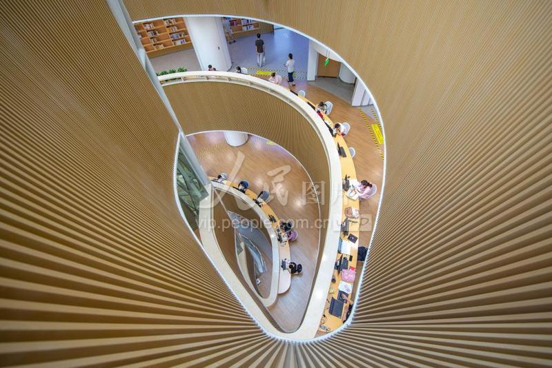 2022年7月17日,在湖北省襄阳市图书馆,市民在阅读图书。 进入暑期以来,湖北省襄阳市图书馆吸引了不少市民来此阅读学习,消暑度夏。襄阳市图书馆位于湖北省襄阳市东津新区,建筑主体以智慧树为设计灵感,目前藏书220多万册。