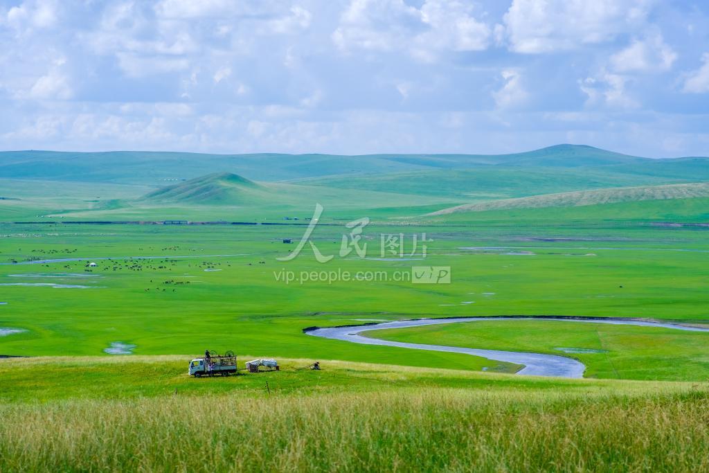 夏日时节,内蒙古呼伦贝尔大草原,水草丰茂,满眼青翠,景色如画。