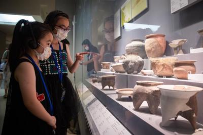 暑假期间,许多小朋友在家长的陪伴下来到南京博物院参观游览,感受历史的魅力,丰富假期生活。