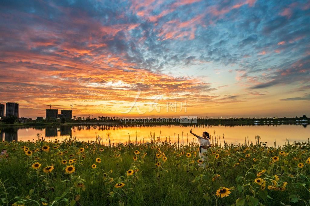 2022年7月20日傍晚,雨过天晴,彩霞满天,扮靓了四川眉山市彭山区彭祖湿地公园。